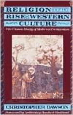 Title: Religion and the Rise of Western Culture Author: Christopher Dawson ISBN: 978038542110 Price: 16.00 Publisher: Doubleday Religious Publishing Group Publication Date: 11/1/91 Format: Trade Paperback Pages: 244 Description: In this edition of his classic work, "Religion and the Rise of Western Culture," Christopher Dawson addresses two of the most pressing subjects of our day: the origin of Europe and the religious roots of Western culture. With the magisterial sweep of Toynbee, to whom he is often compared, Dawson tells here the tale of medieval Christendom. From the brave travels of sixth-century Irish monks to the grand synthesis of Thomas Aquinas in the thirteenth century, Dawson brilliantly shows how vast spiritual movements arose from tiny origins and changed the face of medieval Europe from one century to the next. The legacy of those years of ferment remains with us in the great cathedrals, Gregorian chant, and the works of Giotto and Dante. Even more, though, for Dawson these centuries charged the soul of the West with a spiritual concern--a concern that he insists "can never be entirely More... |